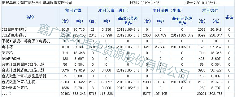2019.11.04回收拆解統(tǒng)計(jì)表
