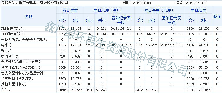 2019.11.09回收拆解統(tǒng)計(jì)表