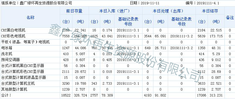 2019.11.11回收拆解統(tǒng)計(jì)表
