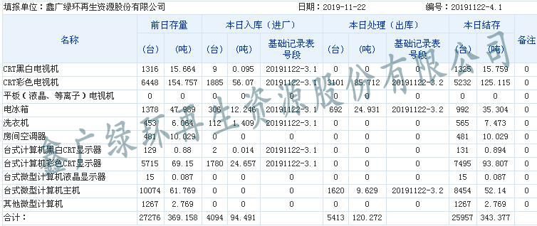 2019.11.22回收拆解統(tǒng)計(jì)表