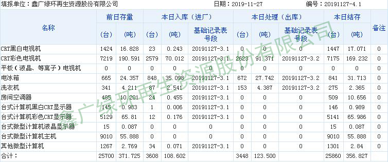 2019.11.27回收拆解統(tǒng)計表