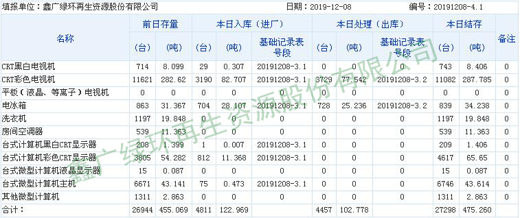 2019.12.08回收拆解統(tǒng)計(jì)表