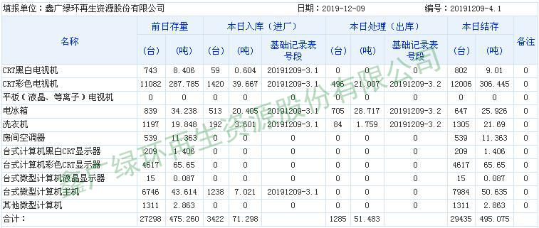 2019.12.09回收拆解統(tǒng)計(jì)表
