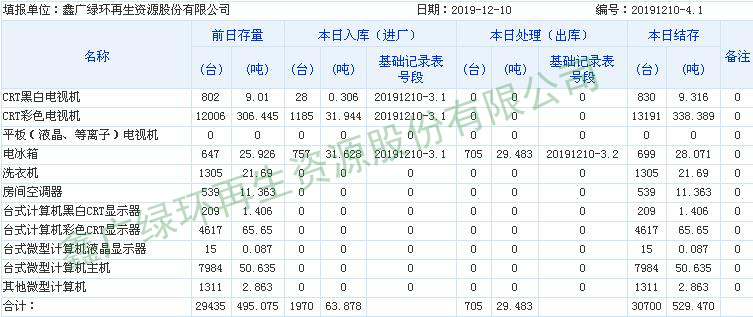 2019.12.11回收拆解統(tǒng)計(jì)表