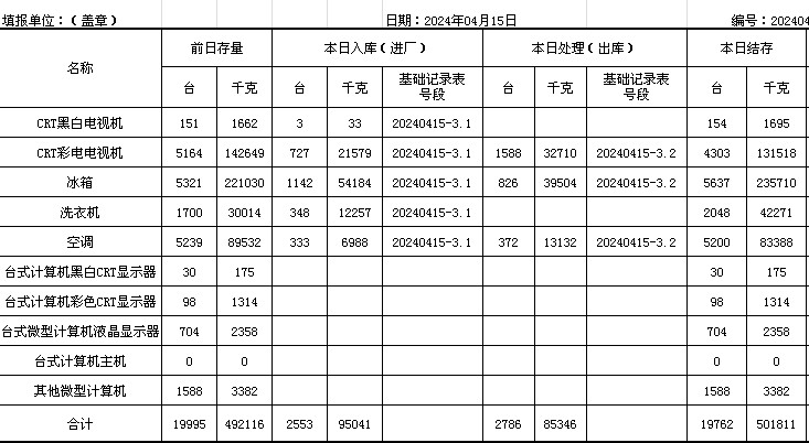 2024.04.16回收拆解統(tǒng)計(jì)表