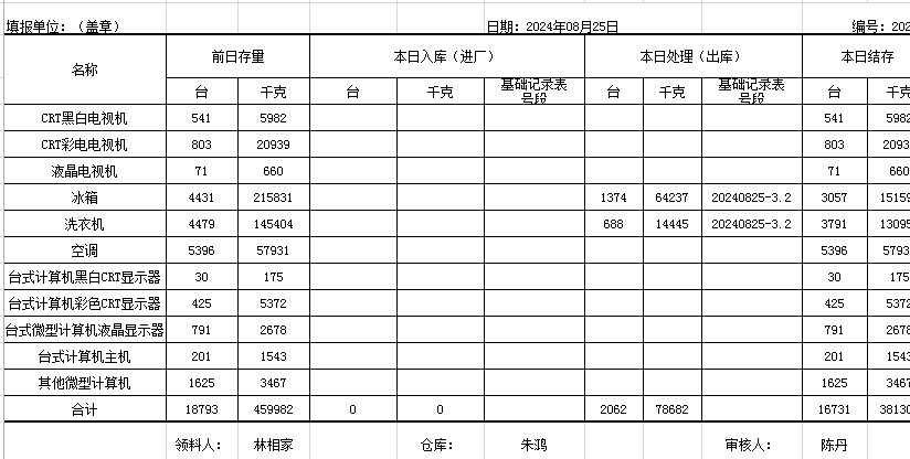 2024.08.25回收拆解統(tǒng)計(jì)表