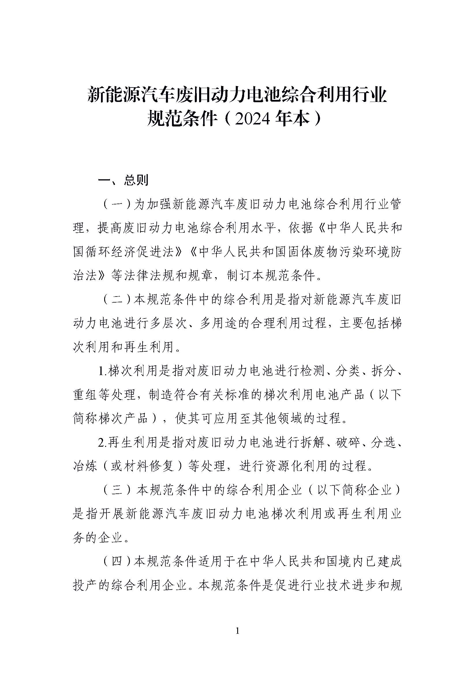 附件:新能源汽車(chē)廢舊動(dòng)力電池綜合利用行業(yè)規(guī)范條件(2024年本)