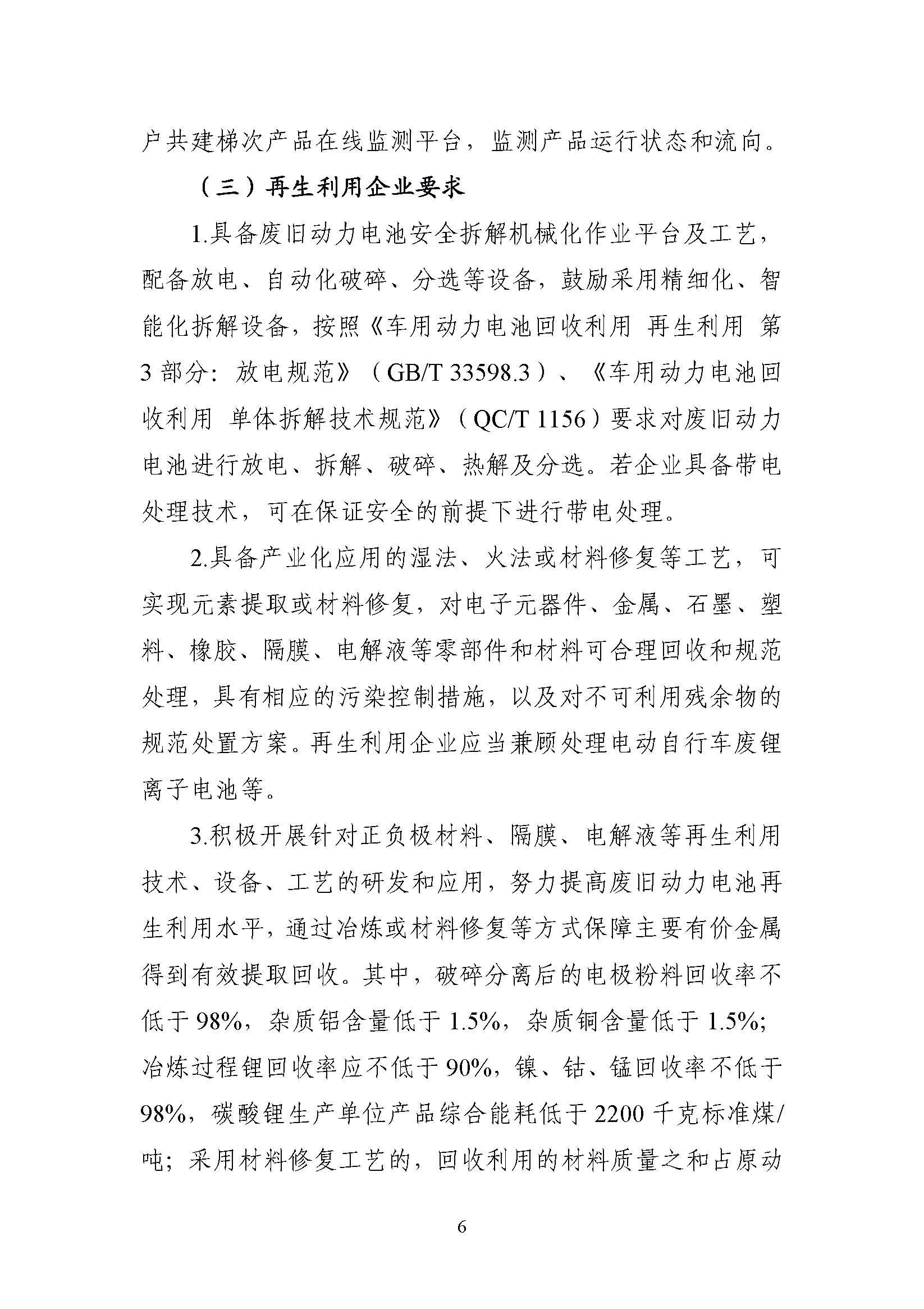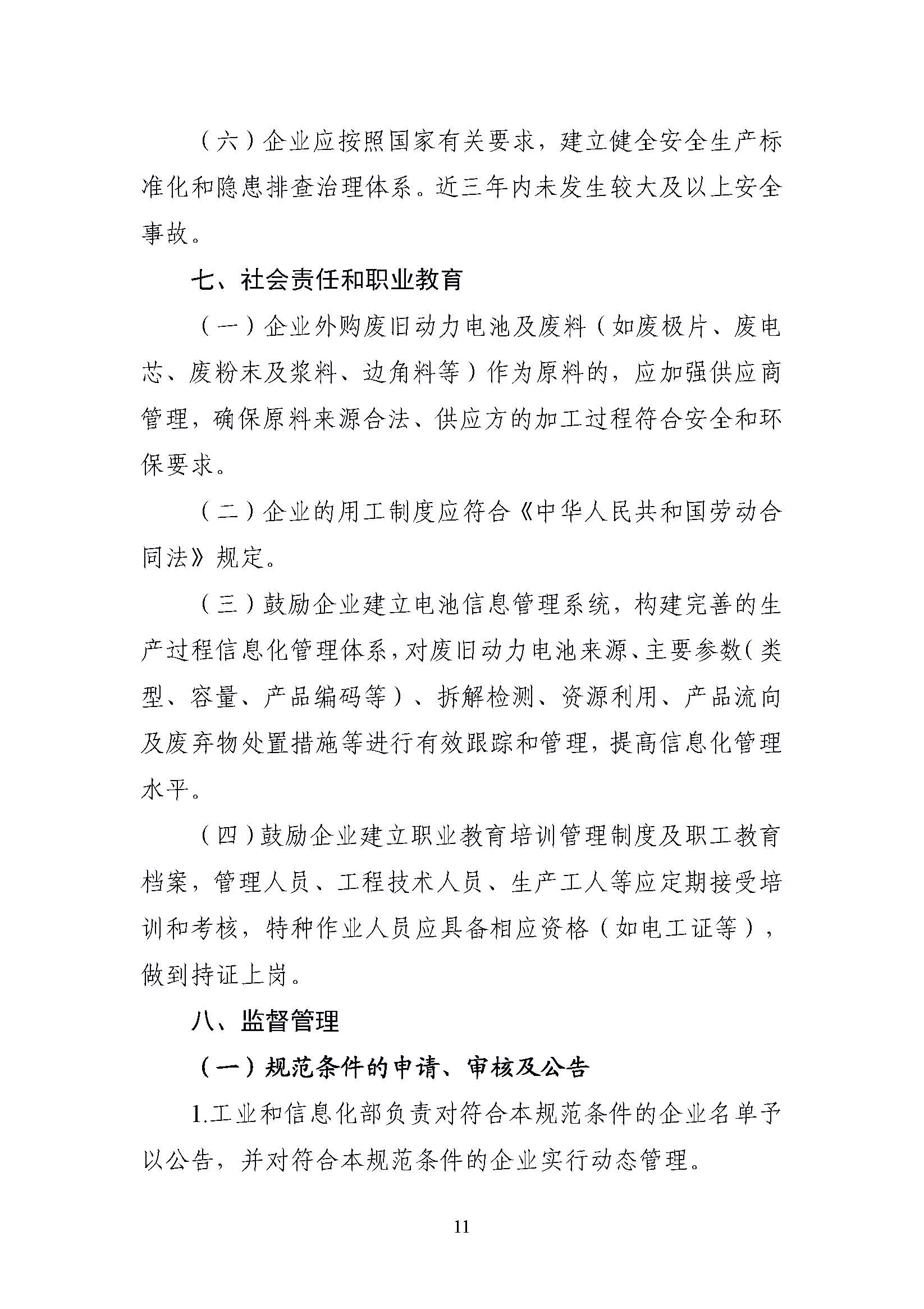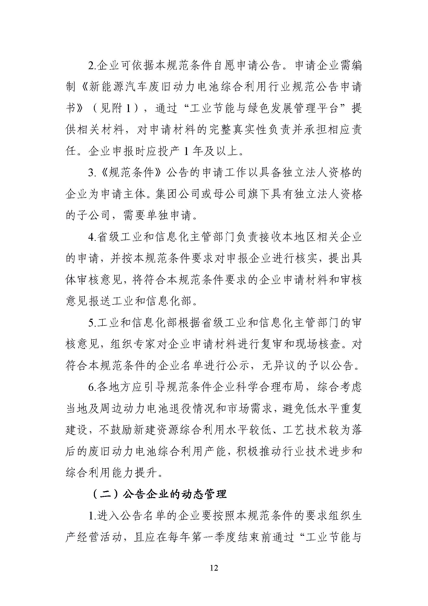 為加強(qiáng)新能源汽車(chē)廢舊動(dòng)力電池綜合利用行業(yè)管理,提高廢舊動(dòng)力電池綜合利用水平,我部對(duì)《新能源汽車(chē)廢舊動(dòng)力蓄電池綜合利用行業(yè)規(guī)范條件(2019年本)》進(jìn)行了修訂,形成《新能源汽車(chē)廢舊動(dòng)力電池綜合利用行業(yè)規(guī)范條件(2024年本)》,現(xiàn)予以公告?!缎履茉雌?chē)廢舊動(dòng)力蓄電池綜合利用行業(yè)規(guī)范條件(2019年本)》《新能源汽車(chē)廢舊動(dòng)力蓄電池綜合利用行業(yè)規(guī)范公告管理暫行辦法(2019年本)》(工業(yè)和信息化部公告2019年第59號(hào))同時(shí)廢止。