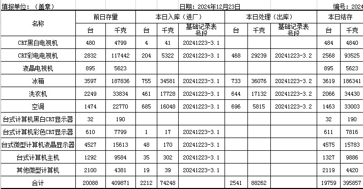 2024.12.23回收拆解統(tǒng)計表
