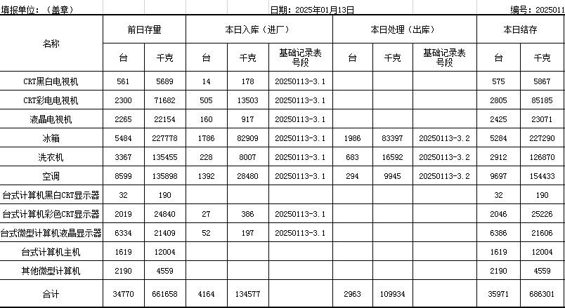 2025.01.13回收拆解統(tǒng)計(jì)表