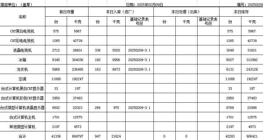 2025.02.09回收拆解統(tǒng)計(jì)表