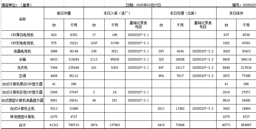 2025.03.27回收拆解統(tǒng)計(jì)表