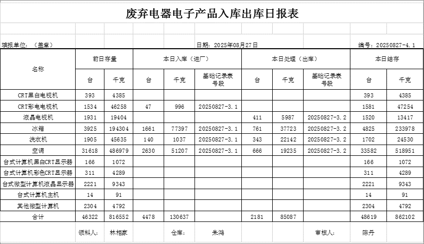 2025.08.27回收拆解統(tǒng)計(jì)表