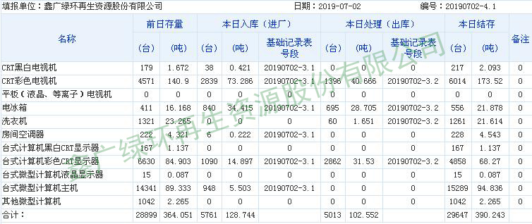 2019.07.01回收拆解統(tǒng)計(jì)表