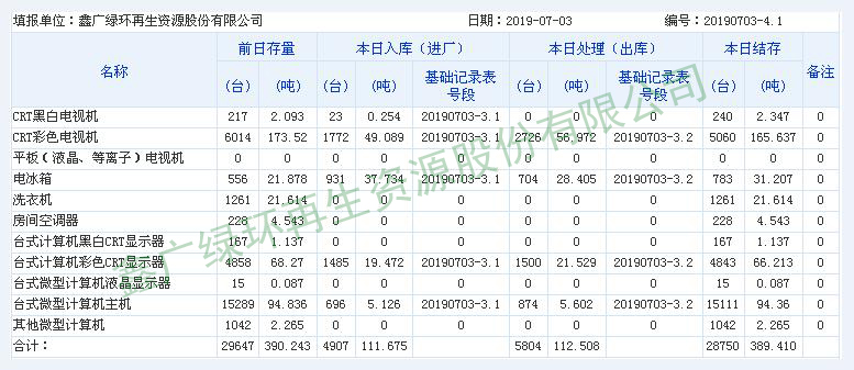 2019.07.03回收拆解統(tǒng)計表