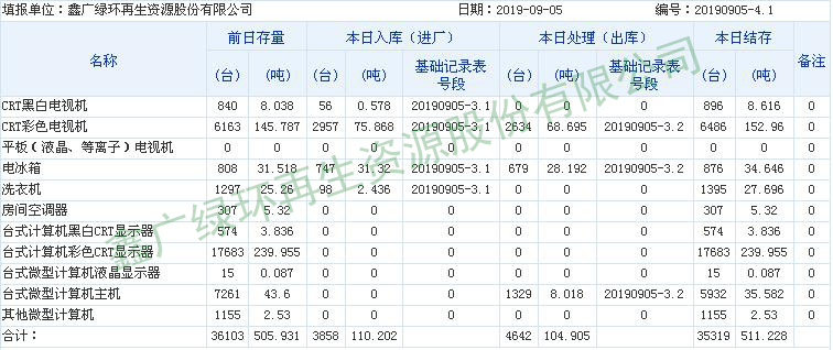 2019.09.04回收拆解統(tǒng)計(jì)表