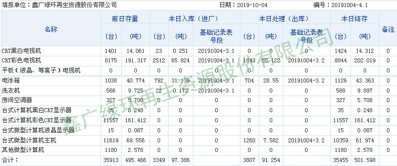 2019.10.04回收拆解統(tǒng)計(jì)表