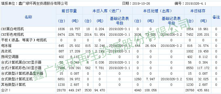 2019.10.26回收拆解統(tǒng)計(jì)表