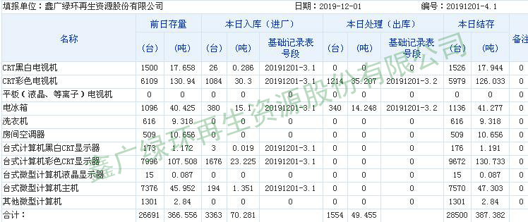 2019.12.01回收拆解統(tǒng)計表