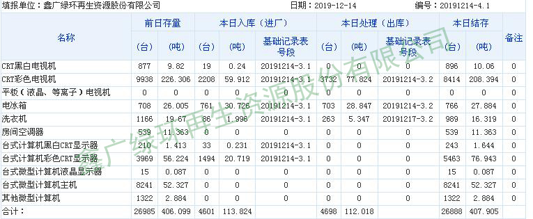 2019.12.14回收拆解統(tǒng)計(jì)表