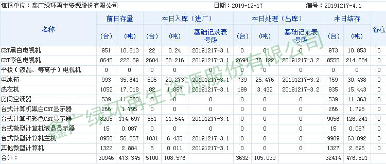 2019.12.17回收拆解統(tǒng)計(jì)表