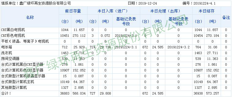 2019.12.24回收拆解統(tǒng)計(jì)表