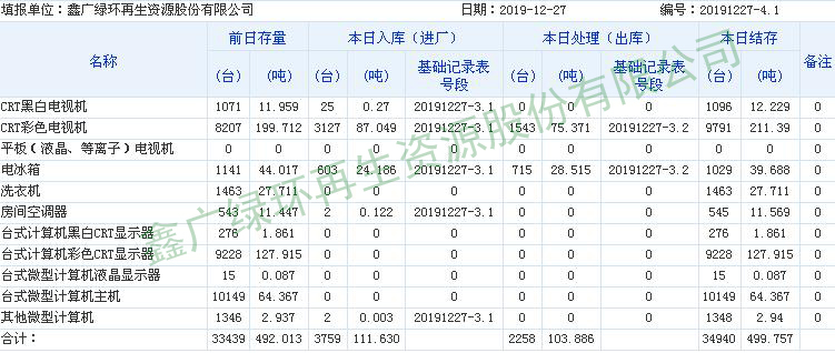 2019.12.27回收拆解統(tǒng)計(jì)表