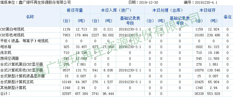 2019.12.30回收拆解統(tǒng)計(jì)表