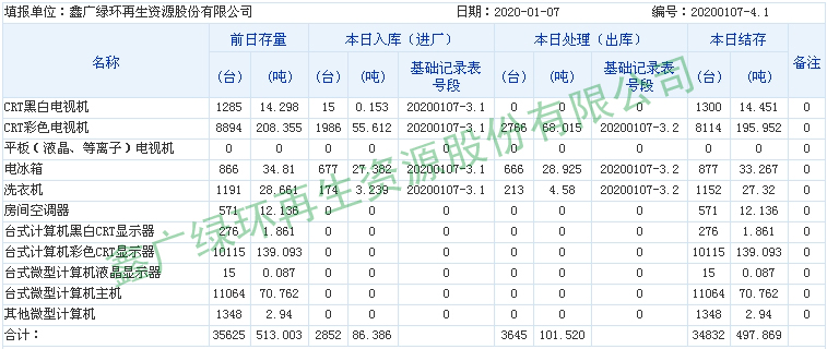 2020.01.07回收拆解統(tǒng)計(jì)表