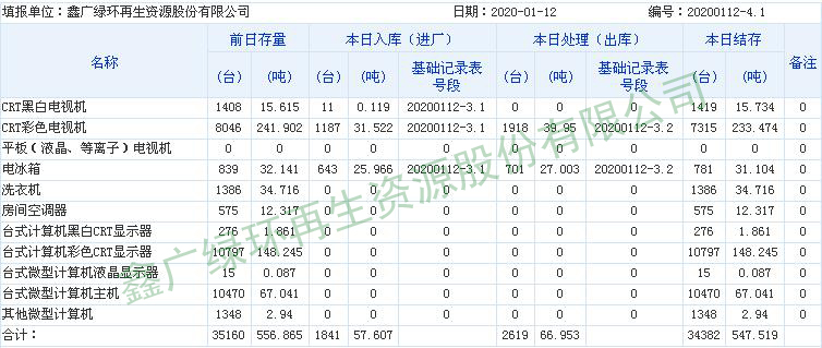 2020.01.12回收拆解統(tǒng)計(jì)表