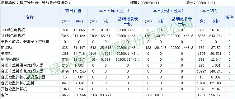 2020.01.14回收拆解統(tǒng)計(jì)表